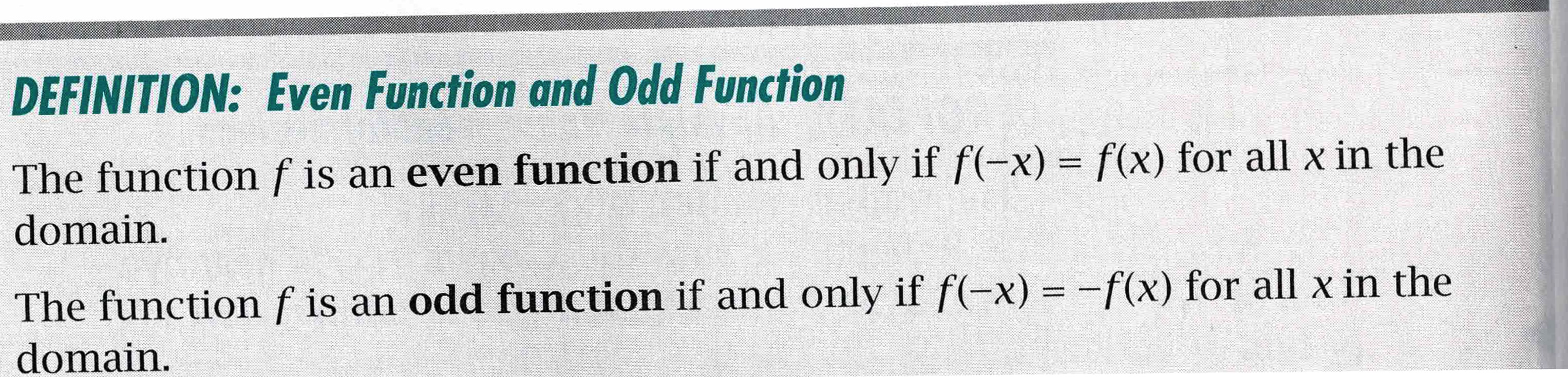 This is a very quick review of both the graphical and the algebraic differences between odd and even functions. |